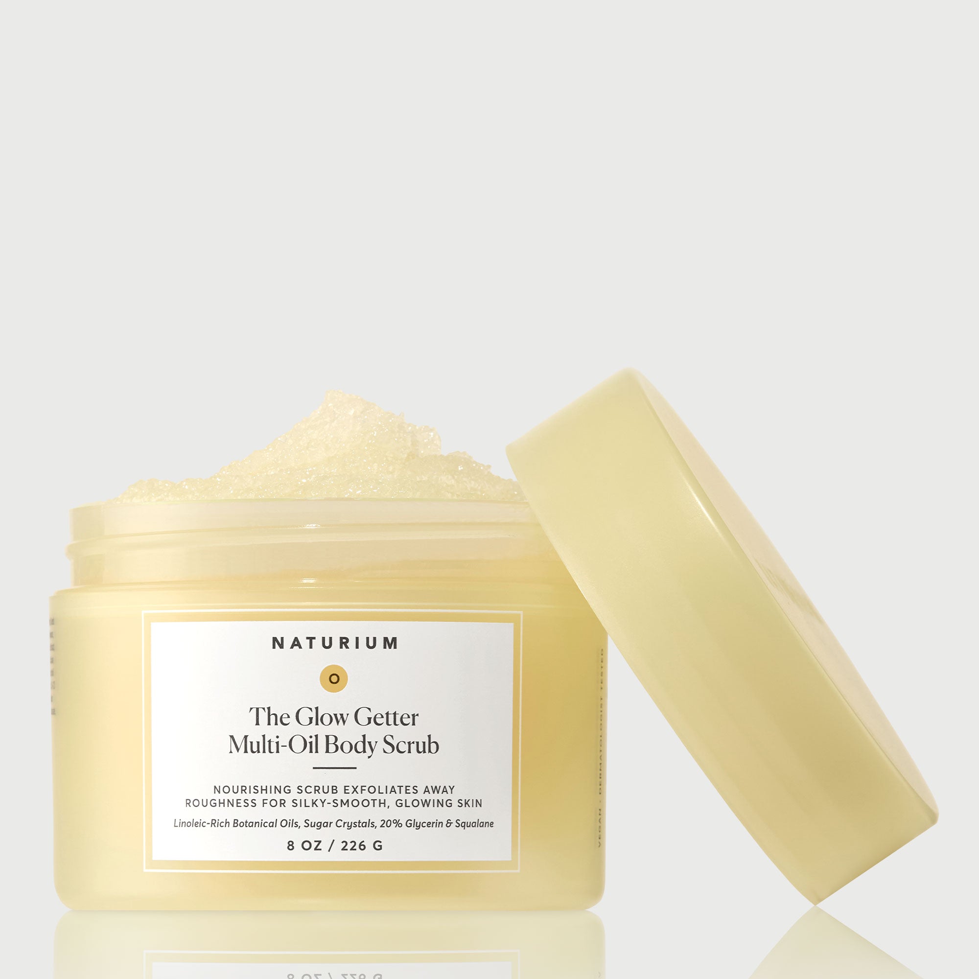 Our multi-oil body scrub gently exfoliates to reveal radiant skin. Formulated with linoleic-rich botanical oils, sugar crystals, 20% glycerin, and squalane, this scrub helps leave skin ultra smooth and soft, with a hydrated and healthy-looking glow. Featuring the iconic Glow Getter vanilla coconut scent.